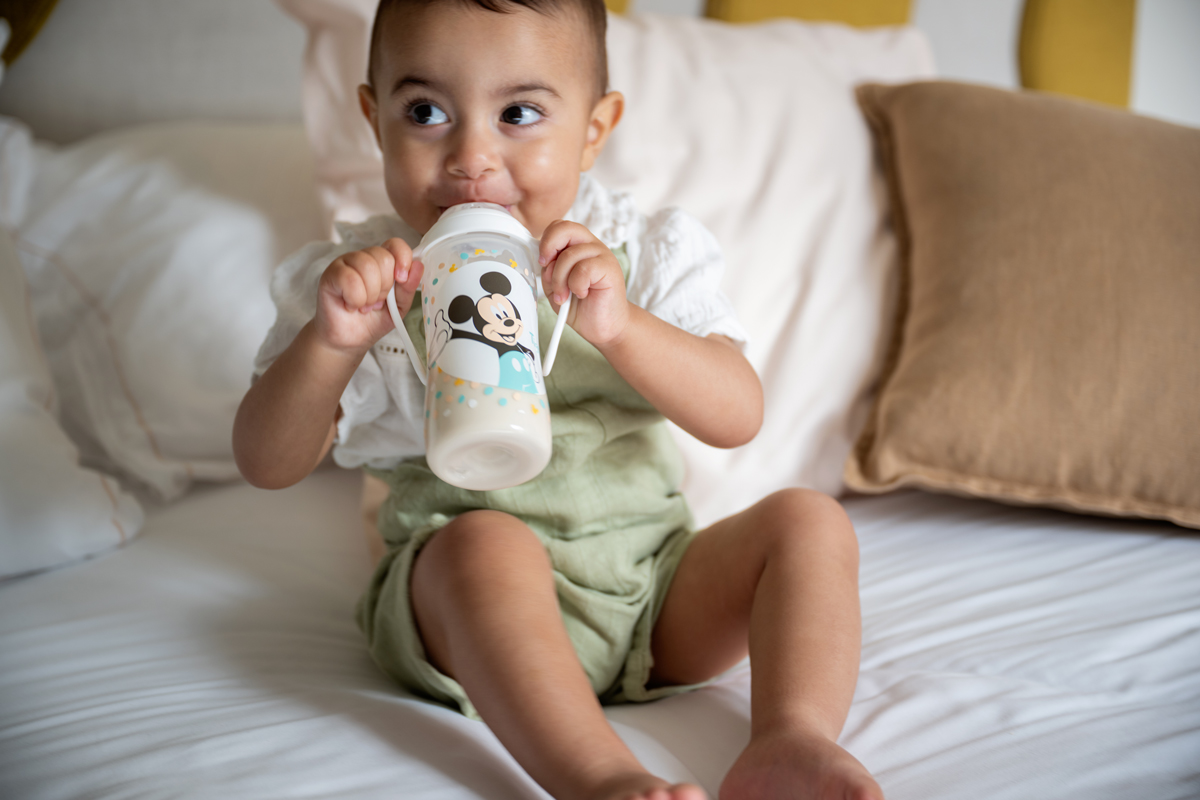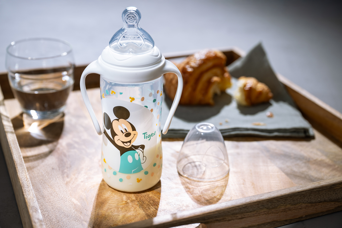 En formato de 300ml, acompañará al bebé cuando crezca y necesite mayores cantidades. Gracias a sus asas, el bebé aprende a sostenerlo por su cuenta fácilmente.